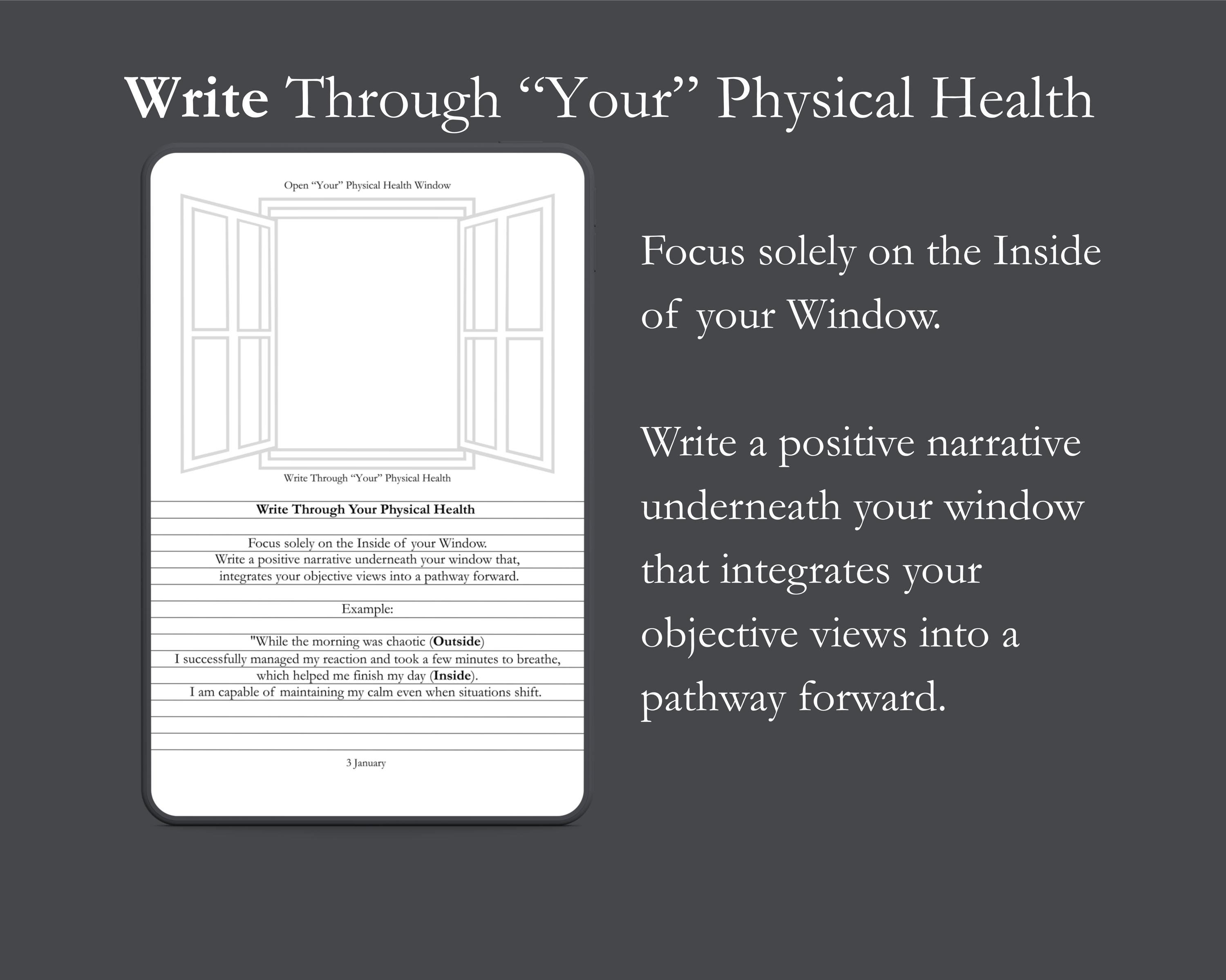 This Physical Health journal is a way to visualise the transition from raw, internal noise to a structured, objective perspective. By using the Metaphorical Physical Health Window, you transform journaling into a tool for cognitive clarity.